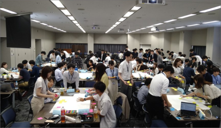 金融分野5年目社員、7年目社員の交流&キャリアを 考えるワークショップを実施。組織の中核となる社員に対して、組織からの期待を伝え自身の育成やキャリアを考える機会を提供しました。新卒入社者と経験者採用入社者の交流の機会でもあり、相互刺激を起こすことも狙いです。