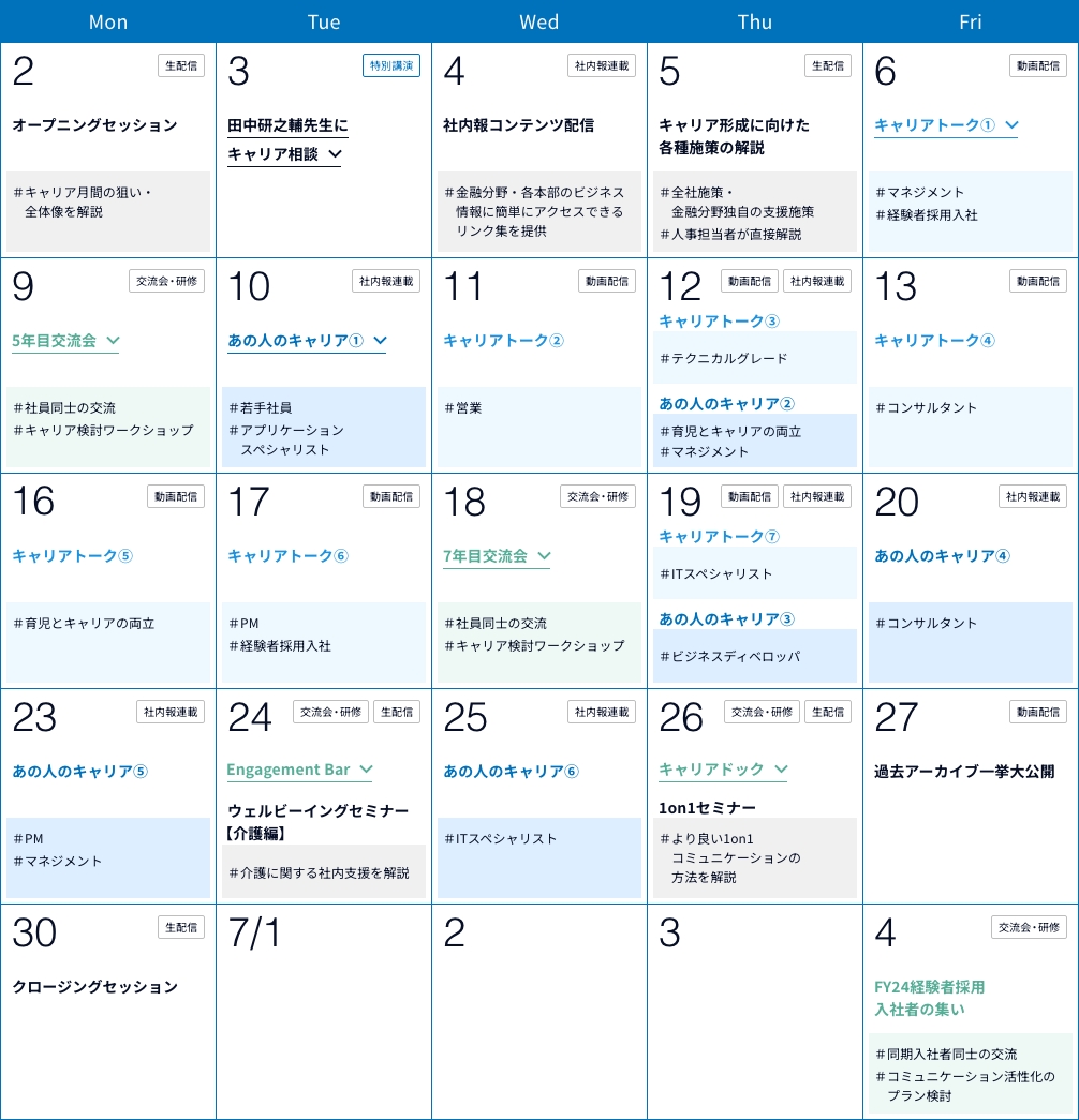 6月のキャリア月間では、各Stepに沿ってさまざまなコンテンツを、1か月間毎日実施しました。